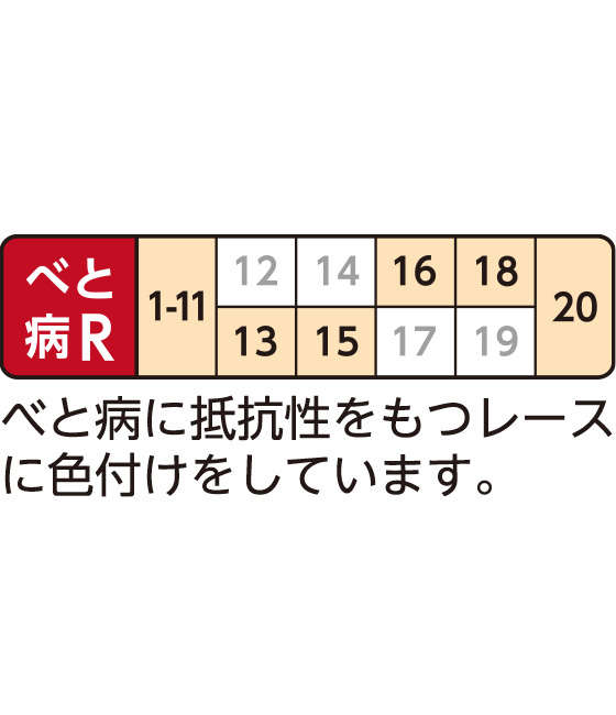 - べと病レース1〜11・13・15・16・18・20に抵抗性をもち、萎凋病にも耐病性をもつ。