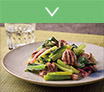 コマツナはカルシウムやカリウムが豊富で、常食したくて栽培しています。味噌汁に煮物、和え物、炒め物といろんな料理にちょっとずつ取り入れていますが、砂肝と炒める時はコマツナだけで真っ向勝負!たんぱく質、鉄分、ビタミンB12、葉酸を多く含む砂肝との取り合わせは超好相性。成長期のお子さん、妊婦さんや、働き盛りからご年配の方にもおすすめです。